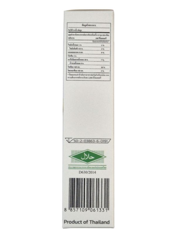 技术信息: 每袋56克铝箔装(每盒3袋) | 保质期:12个月 | 通过泰国FDA、清真、HACCP、GMP/GHPs、ISO 22000认证。